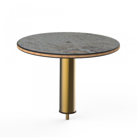 Mogogo Buffet Solutions Modular High Display Shelf, 18" dia. x 12-1/2"H, round, gray slate BHP high pressure laminate with bamboo core top, brushed brass segment