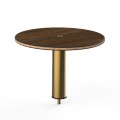Mogogo Buffet Solutions Modular High Display Shelf, 18" dia. x 12-1/2"H, round, Bengali mango wood BHP high pressure laminate with bamboo core top, brushed brass segment