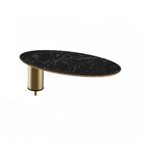 Mogogo Buffet Solutions Modular Display Shelf, 20" x 10" x 6-1/2"H, large, low, oval, Nero Marquina marble BHP low pressure laminate with bamboo core top, brushed brass segment