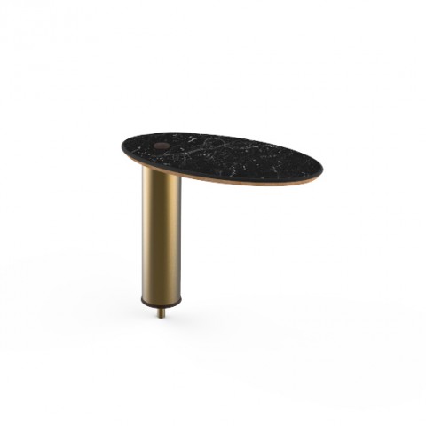 Mogogo Buffet Solutions Modular High Display Shelf, 16" x 8" x 12-1/2"H, small, oval, Nero Marquina marble BHP High pressure laminate with bamboo core top, brushed brass segment