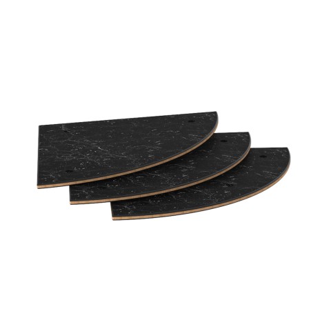 Mogogo Buffet Solutions Modular High Display Shelf Set, 29-1/2" x 29-1/2", triangular, Nero Marquina marble BHP high pressure laminate with bamboo core top, brushed stainless steel segment