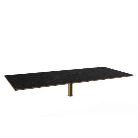 Mogogo Buffet Solutions Modular Display Tabletop, 71" x 29-1/2", rectangular top with central hole, Nero Marquina marble BHP high pressure laminate with bamboo core top, brushed brass segment