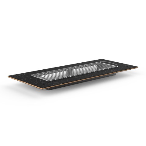 Mogogo Buffet Solutions Modular Tabletop Grill, 71" x 29-1/2" 48" x 25" grill, Nero Marquina marble BHP high pressure laminate with bamboo core top