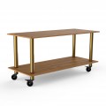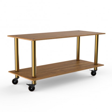 Mogogo Buffet Solutions Modular Serving Table, 2-tier, 71" x 29-1/2" x 35"H, rectangular, large, high density bamboo finish, brushed brass casters, knockdown