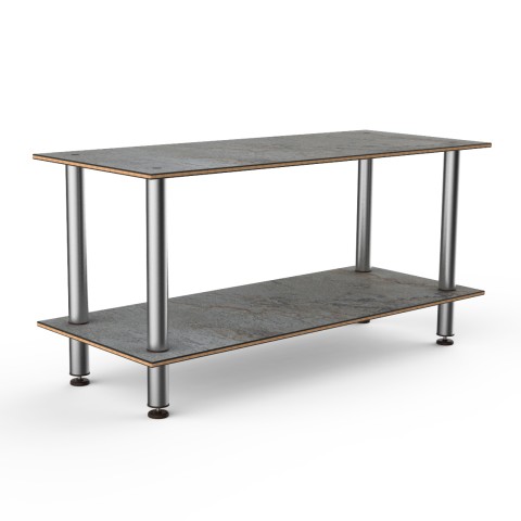 Mogogo Buffet Solutions Modular Serving Table, 2-tier, 71" x 29-1/2" x 35"H, rectangular, large, gray slate BHP high pressure laminate with bamboo core top, brushed stainless steel legs, knockdown