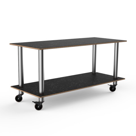 Mogogo Buffet Solutions Modular Serving Table, 2-tier, 71" x 29-1/2" x 35"H, rectangular, large, Nero Marquina marble BHP high pressure laminate with bamboo core top, brushed stainless steel casters, knockdown