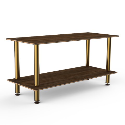 Mogogo Buffet Solutions Modular Serving Table, 2-tier, 71" x 29-1/2" x 35"H, rectangular, large, Bengali mango wood BHP high pressure laminate with bamboo core top, brushed brass legs, knockdown