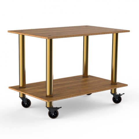 Mogogo Buffet Solutions Modular Serving Table, 2-tier, 47" x 29-1/2" x 35"H, rectangular, medium, high density bamboo finish, brushed brass casters, knockdown