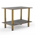 Mogogo Buffet Solutions Modular Serving Table, 2-tier, 47" x 29-1/2" x 35"H, rectangular, medium, grey slate BHP high pressure laminate with bamboo core top, brushed brass legs, knockdown