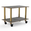Mogogo Buffet Solutions Modular Serving Table, 2-tier, 47" x 29-1/2" x 35"H, rectangular, medium, grey slate BHP high pressure laminate with bamboo core top, brushed brass casters, knockdown