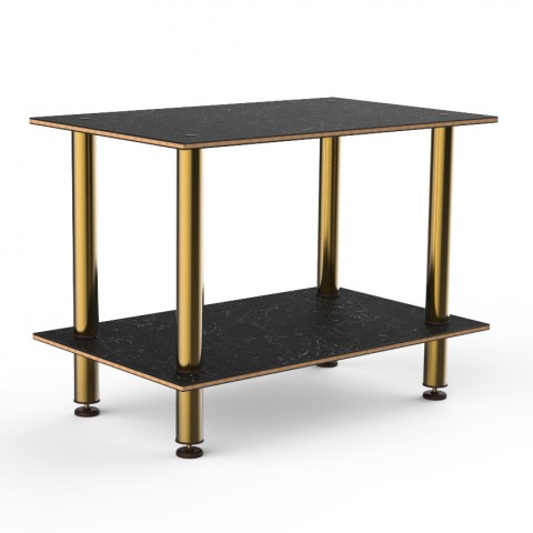 Mogogo Buffet Solutions Modular Serving Table, 2-tier, 47" x 29-1/2" x 35"H, rectangular, medium, Nero Marquina marble BHP high pressure laminate with bamboo core top, brushed brass legs, knockdown