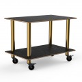 Mogogo Buffet Solutions Modular Serving Table, 2-tier, 47" x 29-1/2" x 35"H, rectangular, medium, Nero Marquina marble BHP high pressure laminate with bamboo core top, brushed brass casters, knockdown