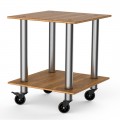 Mogogo Buffet Solutions Modular Serving Table, 2-tier, 29-1/2" x 29-1/2" x 35"H, square, small, high density bamboo finish, brushed stainless steel casters, knockdown
