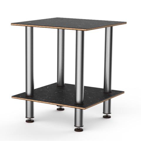 Mogogo Buffet Solutions Modular Serving Table, 2-tier, 29-1/2" x 29-1/2" x 35"H, square, small, Nero Marquina marble BHP high pressure laminate with bamboo core top, brushed stainless steel legs, knockdown