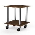 Mogogo Buffet Solutions Modular Serving Table, 2-tier, 29-1/2" x 29-1/2" x 35"H, square, small, Bengali mango wood BHP high pressure laminate with bamboo core top, brushed stainless steel casters, knockdown