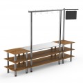 Mogogo Buffet Solutions Modular Pro Salsa Bar Station, 3-tier, 130" x 29-1/2" x 96"H, rectangular, stainless steel workspace, with sign post & chalkboard, high density bamboo finish, brushed stainless steel legs, knockdown