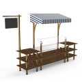 Mogogo Buffet Solutions Modular Classic Canopy Station, 3-tier, 130" x 29-1/2" x 96"H, rectangular, with stainless steel workspace, breath guard, sign post & chalkboard, Bengali mango wood BHP high pressure laminate with bamboo core top, brushed brass seg