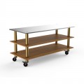 Mogogo Buffet Solutions Modular Pro Station, 3-tier, 71" x 29-1/2" x 33"H, rectangular, stainless steel top surface, high density bamboo finish, brushed brass casters, knockdown (covers not included)