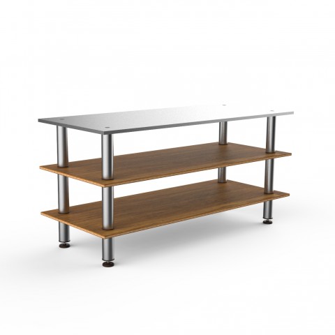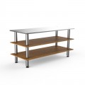 Mogogo Buffet Solutions Modular Pro Station, 3-tier, 71" x 29-1/2" x 33"H, rectangular, stainless steel top surface, high density bamboo finish, brushed stainless steel legs, knockdown (covers not included)