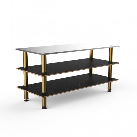 Mogogo Buffet Solutions Modular Pro Station, 3-tier, 71" x 29-1/2" x 33"H, rectangular, stainless steel top surface, Nero Marquina marble BHP high pressure laminate with bamboo core top, brushed brass legs, knockdown (covers not included)