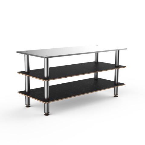 Mogogo Buffet Solutions Modular Pro Station, 3-tier, 71" x 29-1/2" x 33"H, rectangular, stainless steel top surface, Nero Marquina marble BHP high pressure laminate with bamboo core top, brushed stainless steel legs, knockdown (covers not included)