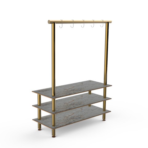 Mogogo Buffet Solutions Modular Classic Arch Unit, 3-tier, 71" x 29-1/2" x 96"H, rectangular, (5) hooks, grey slate BHP high pressure laminate with bamboo core top, brushed brass legs, knockdown (covers not included)