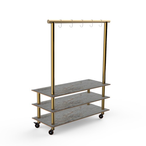 Mogogo Buffet Solutions Modular Classic Arch Unit, 3-tier, 71" x 29-1/2" x 96"H, rectangular, (5) hooks, grey slate BHP high pressure laminate with bamboo core top, brushed brass casters, knockdown (covers not included)