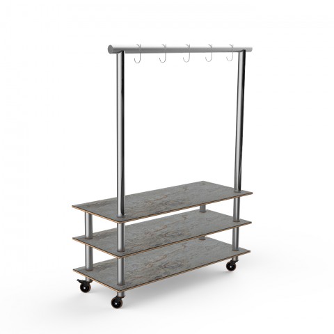 Mogogo Buffet Solutions Modular Classic Arch Unit, 3-tier, 71" x 29-1/2" x 96"H, rectangular, (5) hooks, grey slate BHP high pressure laminate with bamboo core top, brushed stainless steel casters, knockdown (covers not included)