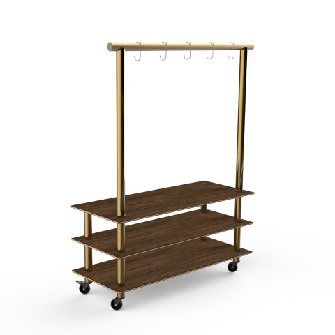 Mogogo Buffet Solutions Modular Classic Arch Unit, 3-tier, 71" x 29-1/2" x 96"H, rectangular, (5) hooks, Bengali mango wood BHP high pressure laminate with bamboo core top, brushed brass casters, knockdown (covers not included)