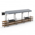 Mogogo Buffet Solutions Modular Pro Fish Market, 3-tier, 272" x 34" x 95-1/2"H, rectangular, stainless steel top, (2) ice bins, (2) breath guards, high density bamboo finishs, white/blue canopy, brushed stainless steel legs, knockdown