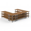 Mogogo Buffet Solutions Modular Triple Buffet Station, 3-tier, 130" x 100-1/2" x 35"H, rectangular, high density bamboo finishs, brushed stainless steel legs, knockdown