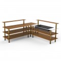 Mogogo Buffet Solutions Modular Cooling Corner Station, 3-tier, 100-1/2" x 100-1/2" x 47-1/2"H, rectangular, stainless steel top with insulated ice bin, (2) back shelves, high density bamboo finish, brushed brass legs, knockdown