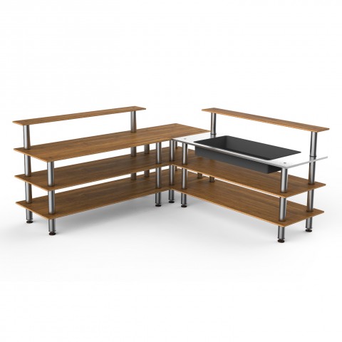 Mogogo Buffet Solutions Modular Cooling Corner Station, 3-tier, 100-1/2" x 100-1/2" x 47-1/2"H, rectangular, stainless steel top with insulated ice bin, (2) back shelves, high density bamboo finish, brushed stainless steel legs, knockdown