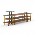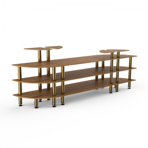 Mogogo Buffet Solutions Modular Classic Buffet Station, 3-tier, 130" x 29-1/2" x 47-1/2"H, curved, double sided, (4) triangular shelves, high density bamboo finish, brushed brass legs, knockdown