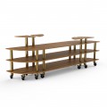 Mogogo Buffet Solutions Modular Classic Buffet Station, 3-tier, 130" x 29-1/2" x 47-1/2"H, curved, double sided, (4) triangular shelves, high density bamboo finish, brushed brass casters, knockdown