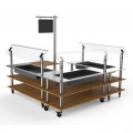 Mogogo Buffet Solutions Modular Chilled Salad Station, 3-tier, 100-1/2" x 100-1/2" x 94-1/2"H, rectangular, self-service, (3) stainless steel tops with insulated ice bin, (3) breath guards, & sign post, high density bamboo finish, brushed stainless steel
