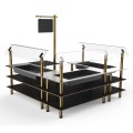 Mogogo Buffet Solutions Modular Chilled Salad Station, 3-tier, 100-1/2" x 100-1/2" x 94-1/2"H, rectangular, self-service, (3) stainless steel tops with insulated ice bin, (3) breath guards, & sign post, Nero Marquina marble BHP high pressure laminate with