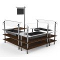 Mogogo Buffet Solutions Modular Chilled Salad Station, 3-tier, 100-1/2" x 100-1/2" x 94-1/2"H, rectangular, self-service, (3) stainless steel tops with insulated ice bin, (3) breath guards, & sign post, Bengali mango wood BHP high pressure laminate with b