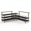 Mogogo Buffet Solutions Modular Pro Corner Station, 3-tier, 100-1/2" x 100-1/2" x 47-1/2"H, rectangular, stainless steel workspace, (2) back shelves, Nero Marquina marble BHP high pressure laminate with bamboo core top, brushed brass legs, knockdown (stoc