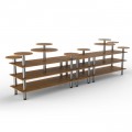 Mogogo Buffet Solutions Modular Display Station, 3-tier, 180-1/2" x 38" x 54"H, rectangular, (10) multi-height shelves, high density bamboo finish, brushed stainless steel legs, knockdown