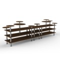 Mogogo Buffet Solutions Modular Display Station, 3-tier, 180-1/2" x 38" x 54"H, rectangular, (10) multi-height shelves, Bengali mango wood BHP high pressure laminate with bamboo core top, brushed stainless steel legs, knockdown