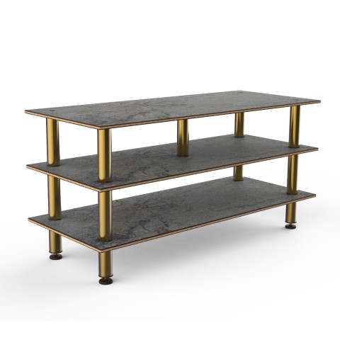 Mogogo Buffet Solutions Modular Midhole Display Unit, 3-tier, 71" x 29-1/2" x 35"H, rectangular, grey slate BHP high pressure laminate with bamboo core top, brushed brass legs, knockdown