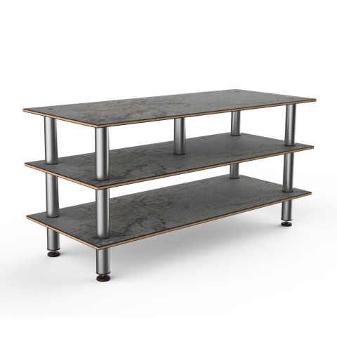 Mogogo Buffet Solutions Modular Midhole Display Unit, 3-tier, 71" x 29-1/2" x 35"H, rectangular, grey slate BHP high pressure laminate with bamboo core top, brushed stainless steel legs, knockdown