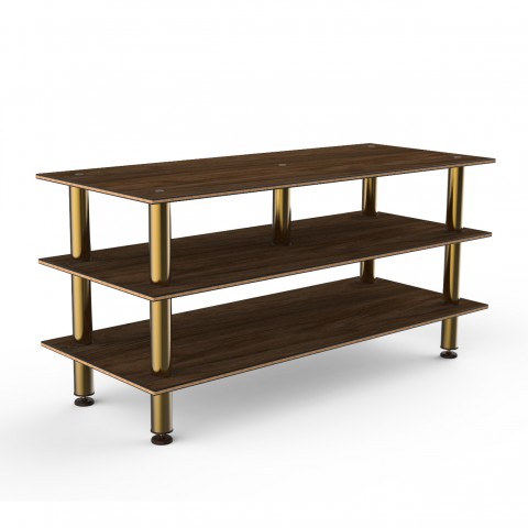 Mogogo Buffet Solutions Modular Midhole Display Unit, 3-tier, 71" x 29-1/2" x 35"H, rectangular, Bengali mango wood BHP high pressure laminate with bamboo core top, brushed brass legs, knockdown