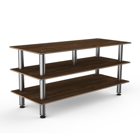 Mogogo Buffet Solutions Modular Midhole Display Unit, 3-tier, 71" x 29-1/2" x 35"H, rectangular, Bengali mango wood BHP high pressure laminate with bamboo core top, brushed stainless steel legs, knockdown