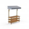 Mogogo Buffet Solutions Modular Classic Canopy Unit, 3-tier, 130 IN X 35 IN X 95 1/2"H, rectangular, high density bamboo finish, white/blue canopy, brushed brass legs, knockdown