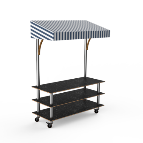 Mogogo Modular Classic Canopy Unit, 71" x 29-1/2" x 96"H, Marble Black Stainless Steel White/Blue Canopy On Casters