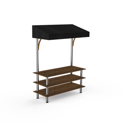 Mogogo Buffet Solutions Modular Classic Canopy Unit, 3-tier, 71" x 29-1/2" x 96"H, rectangular, Bengali mango wood BHP high pressure laminate with bamboo core top, black canopy, brushed stainless steel legs, knockdown