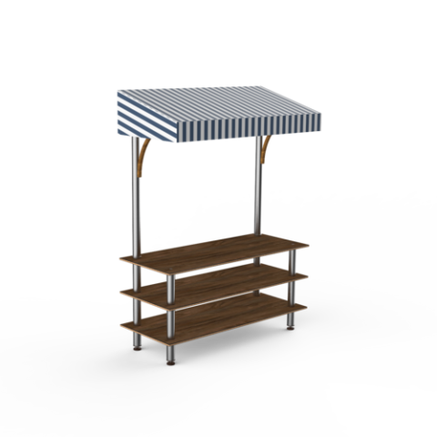 Mogogo Modular Classic Canopy Unit, 71" x 29-1/2" x 96"H, Bengali Mango Wood Stainless Steel White/Blue Canopy On Legs