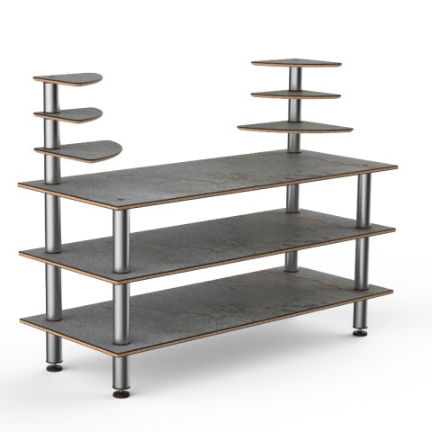 Mogogo Buffet Solutions Modular Classic Multi-Shelf Station, 3-tier, 71" x 29-1/2" x 54"H, rectangular, (6) triangular shelves, grey slate BHP high pressure laminate with bamboo core top, brushed stainless steel legs, knockdown